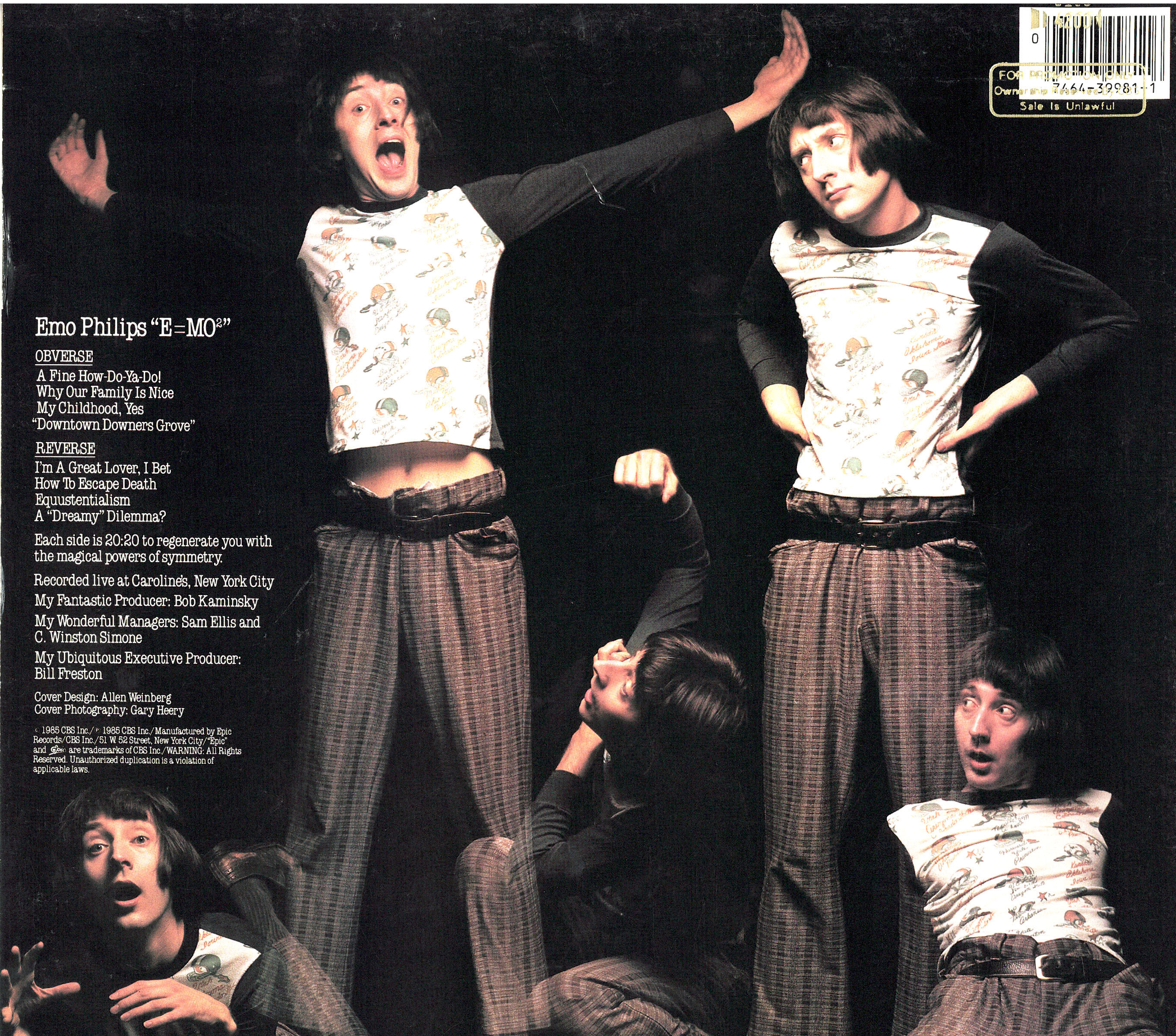 and true, on my first comedy LP, E=MO 2 (Epic Records, 1985)